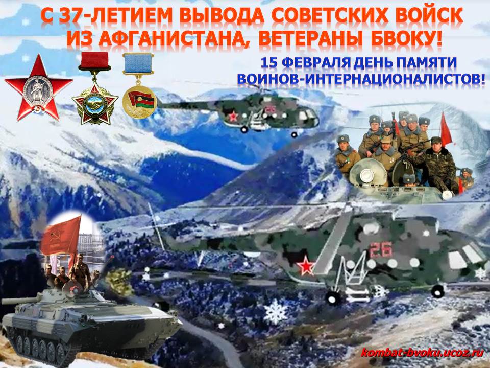 Поздравляем ветеранов ОКСВА с 37-й годовщиной выполнения задач 40 ОА 15 февраля 1989г., вывода советских войск из Афганистана! Слава ветеранам 40 ОА! Вечная память погибшим и ушедшим!