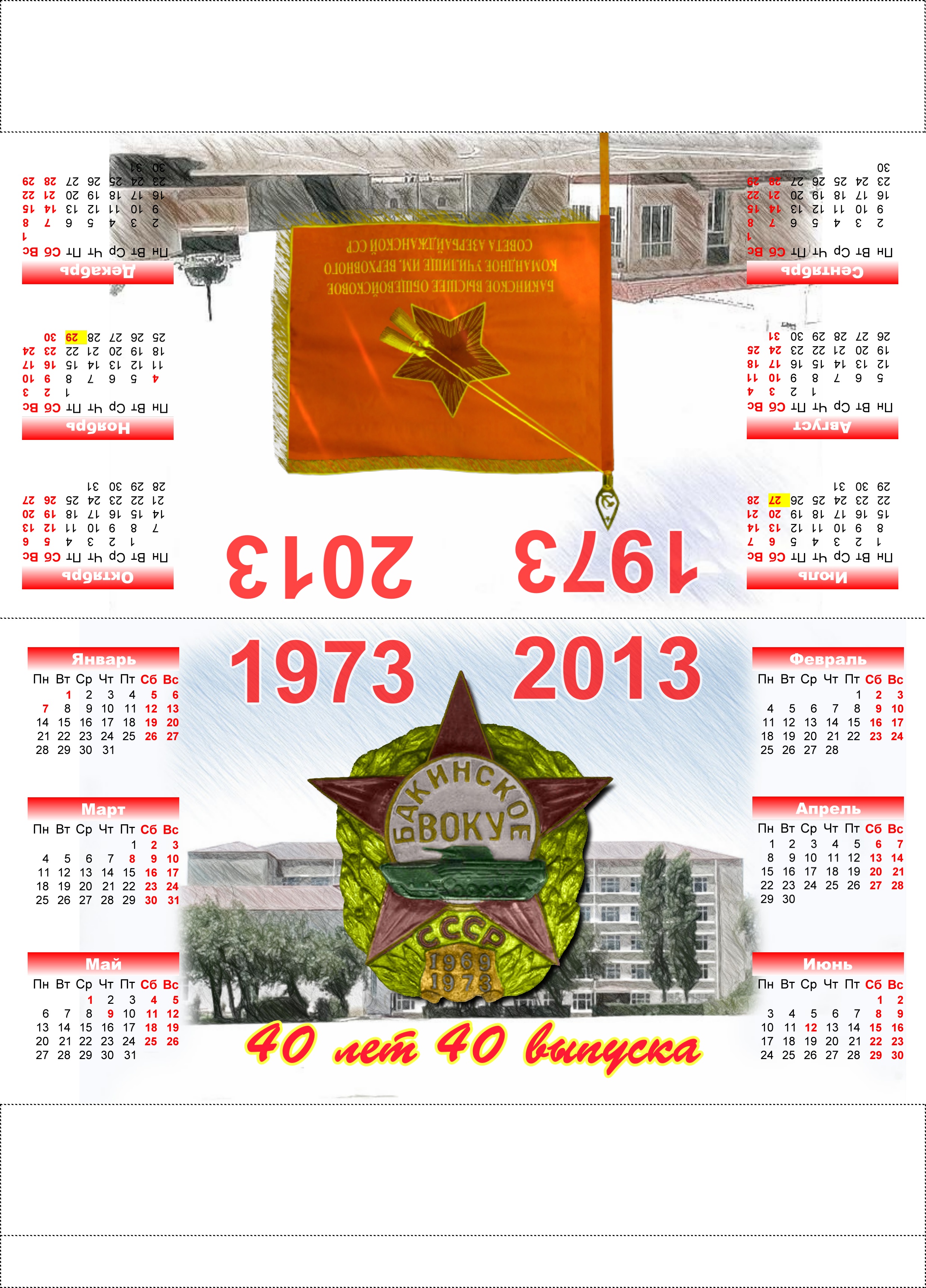 Настольный юбилейный календарь на 2013 "40 лет 40-му выпуску БВОКУ"